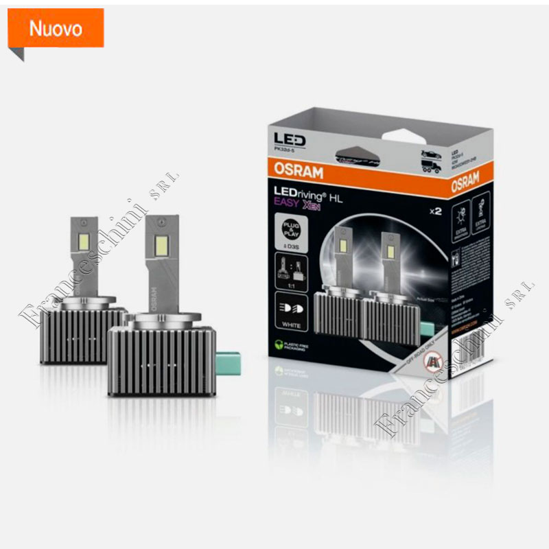 cod.OS66340DWESY-2HB - LEDriving HL EASY XEN garantiscono una sostituzione LED compatta delle tradizionali lampade abbaglianti e anabbaglianti D5S. Queste lampade LED retrofit sono compatibili con i sistemi a 12 V, hanno una temperatura di colore di 6.500 K e garantiscono una distribuzione della luce più ampia: più luce permette di vedere meglio e quindi di reagire prima. La tecnologia di gestione termica OSRAM con raffreddamento attivo integrato, una ventola ad alta velocità, massimizza la dissipazione del calore per prestazioni più potenti. La qualità premium OSRAM e la tecnologia LED garantiscono una lunga durata.