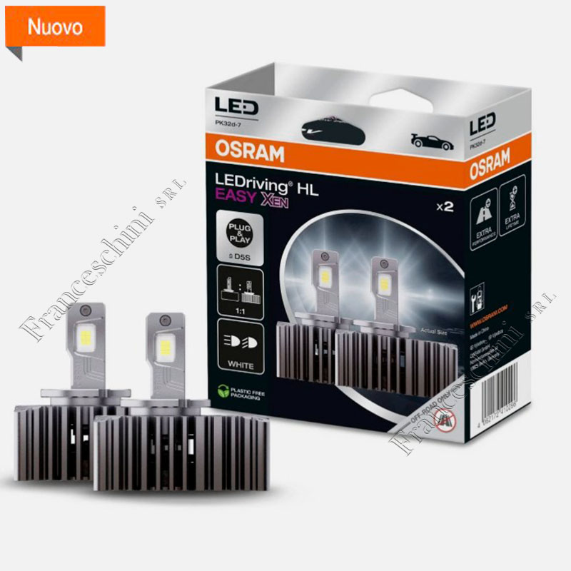 cod.OS66540DWESY-2HB - LEDriving HL EASY XEN garantiscono una sostituzione LED compatta delle tradizionali lampade abbaglianti e anabbaglianti D5S. Queste lampade LED retrofit sono compatibili con i sistemi a 12 V, hanno una temperatura di colore di 6.500 K e garantiscono una distribuzione della luce più ampia: più luce permette di vedere meglio e quindi di reagire prima. La tecnologia di gestione termica OSRAM con raffreddamento attivo integrato, una ventola ad alta velocità, massimizza la dissipazione del calore per prestazioni più potenti. La qualità premium OSRAM e la tecnologia LED garantiscono una lunga durata.